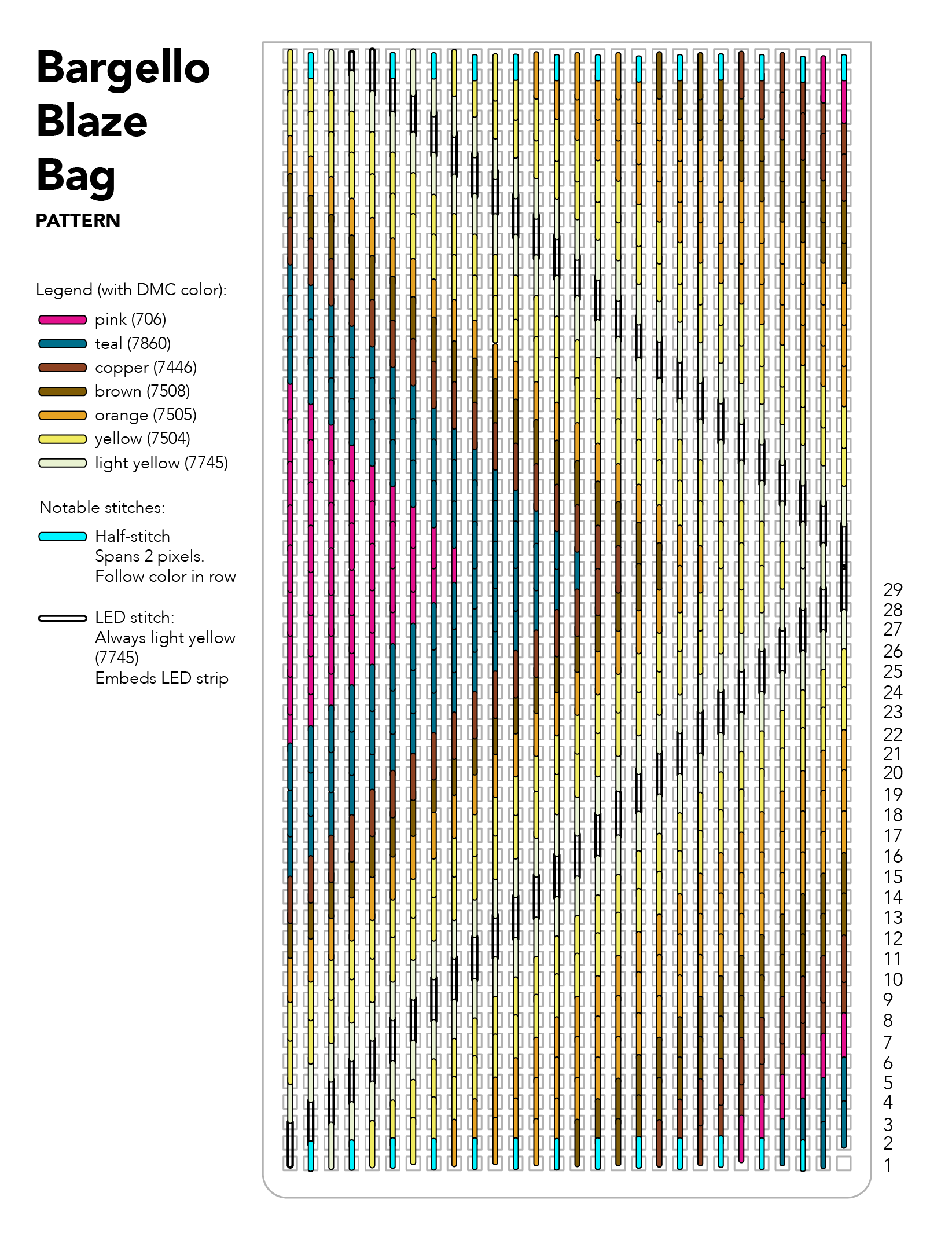 Hello! This page contains a bunch of resources for the Bargello Blaze Bag tutorial in Make: Magazine Vol 97